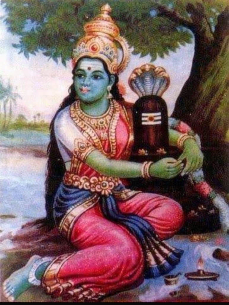Στον ναό Ekambareswarar, με τους 540 πυλώνες του κάτω από ένα mango tree, κοντά στον ποταμό Vegavathi, η Parvati αγκάλιασε το Lingam (σύμβολο του Θεού Shiva), που είχε πλάσει με τα χέρια της από άμμο του ποταμού , όταν μια πλημμύρα που έστειλε ο Shiva απείλησε να το καταστρέψει. Ένας ύμνος στην ανθρώπινη καρδιά που τολμά να αγκαλιάσει το Άπειρο. Συγκινημένος από την αφοσίωσή της, ο Shiva με ανθρώπινη μορφή, εμφανίστηκε και την παντρεύτηκε. Λέγεται ότι τα βραχιόλια και άλλα στολίδια της Kamakshi άφησαν σημάδια στο Lingam, τα οποία είναι ακόμα ορατά, αν και σήμερα είναι καλυμμένα με ασημένιο μανδύα .