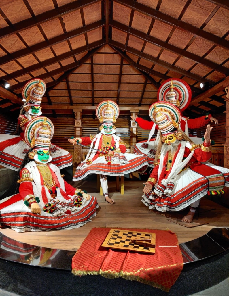 Αργότερα, θα απολαύσουμε το παραδοσιακό χορό Kathakali. Ο Kathakali είναι μια από τις πιο εντυπωσιακές και εκφραστικές μορφές θεατρικού χορού της Ινδίας, που γεννήθηκε στην πολιτεία Κεράλα του νότιου τμήματος της χώρας. Συνδυάζει χορό, μουσική, παντομίμα, θέατρο, ποίηση και καλλιτεχνικό μακιγιάζ, δημιουργώντας μια ολιστική, συμβολική και σχεδόν υπερβατική εμπειρία.